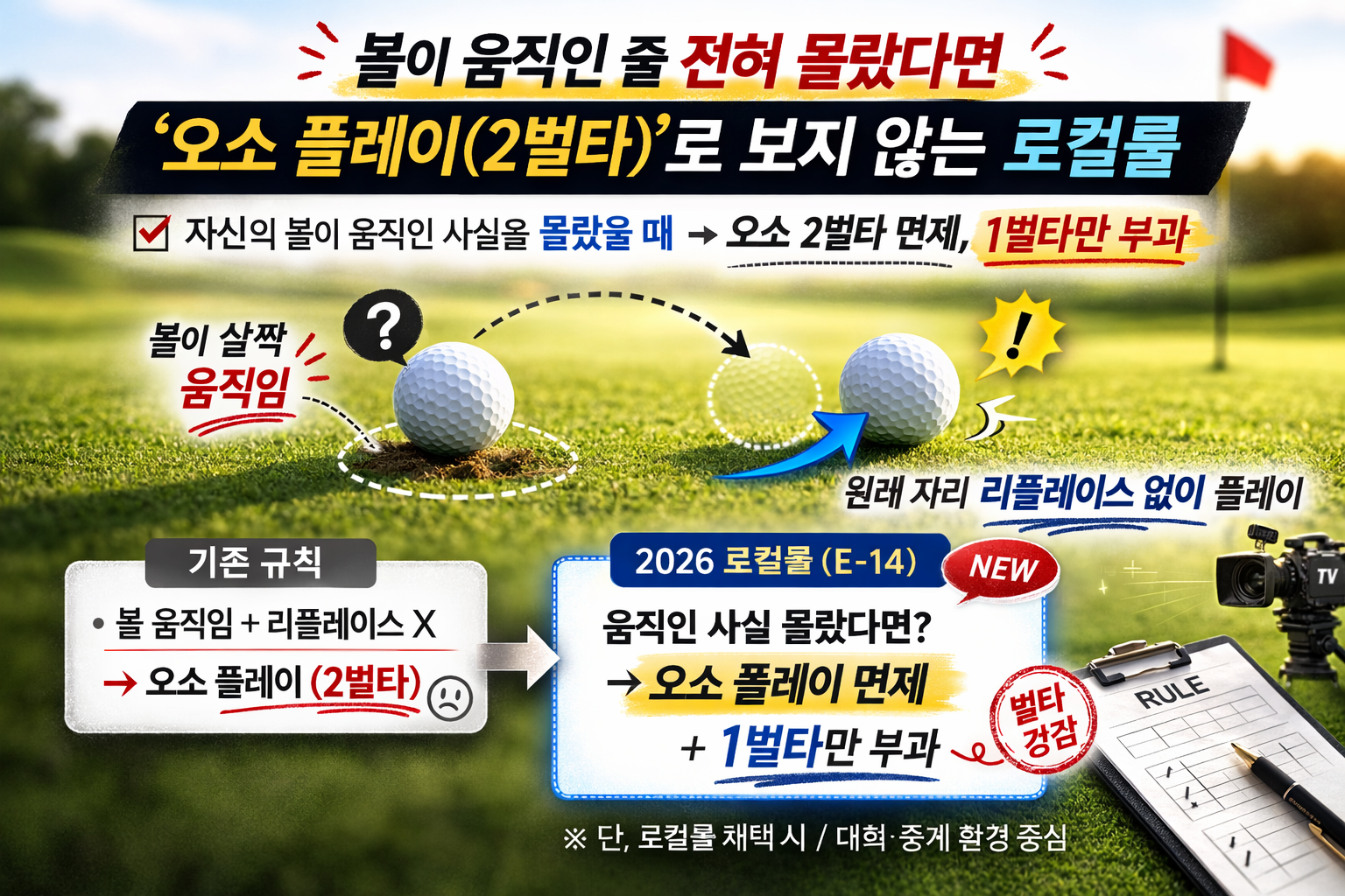 "볼이 움진인 줄 전혀 몰랐다"면 '오소 플레이(2벌타)'로 보지 않는 로컬룰(MLR E-14)