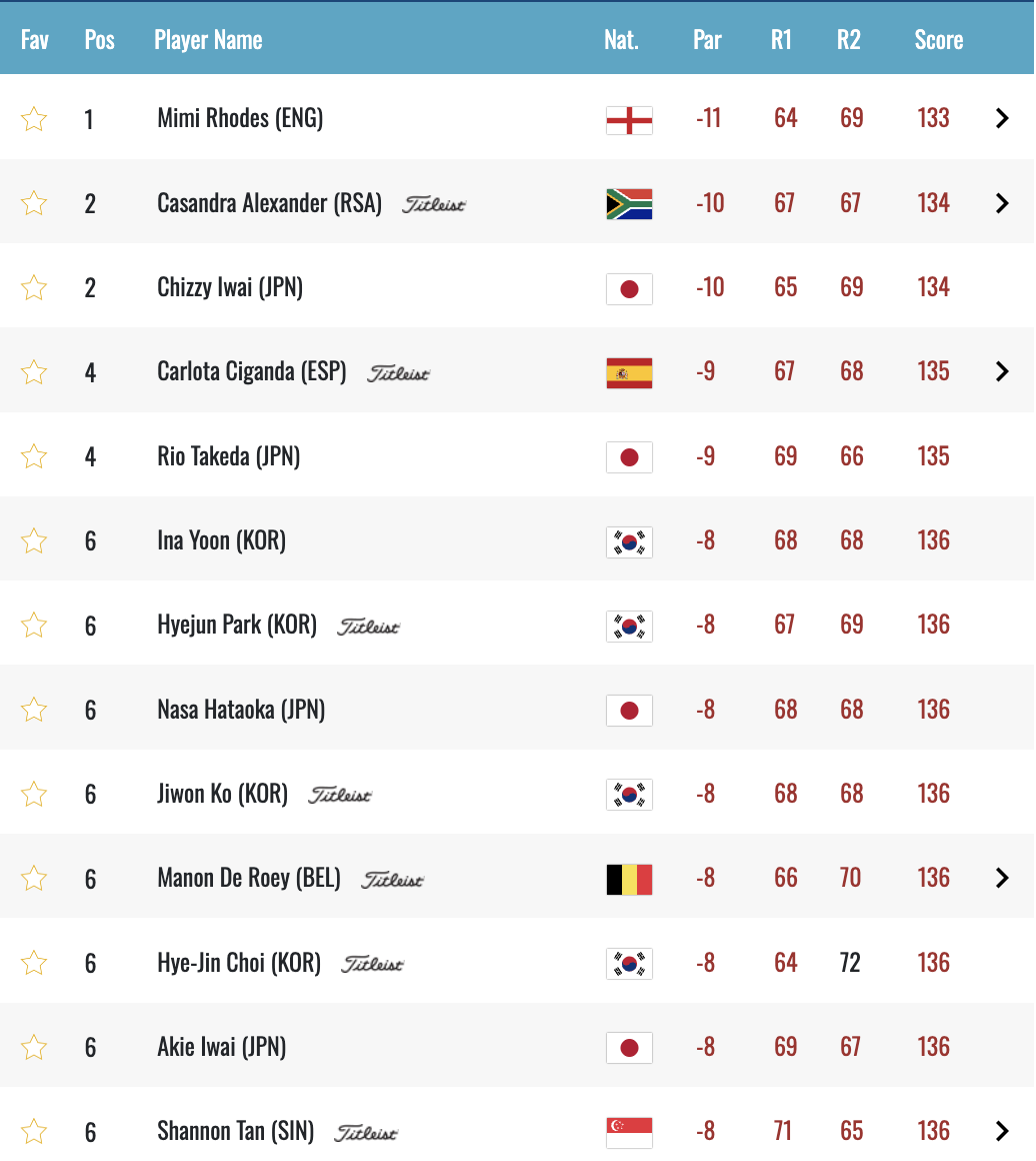 최혜진, 이소미, 유현조, 홍정민, 방신실, 김민솔, 윤이나, 이동은, 양희영, 고지원, 마다솜, 정윤지, 서교림, 배소현, 박혜준, 김민선7, 김시현, 박보겸, 이채은2