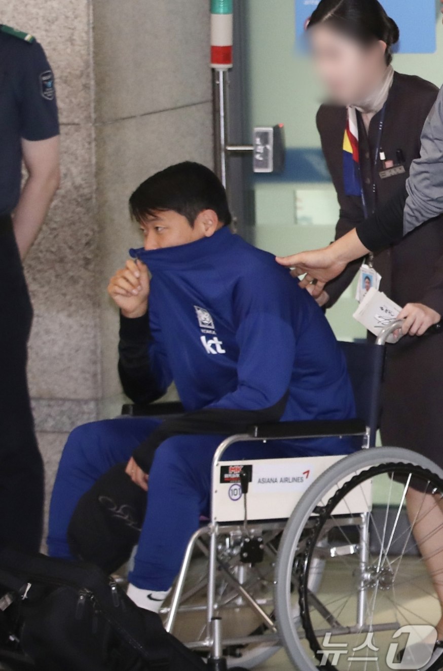 대표팀과 함께 인천국제공항을 통해 귀국한 황희찬은 휠체어를 타고 등장하면서 부상의 정도가 심각하다고 추측되었습니다.