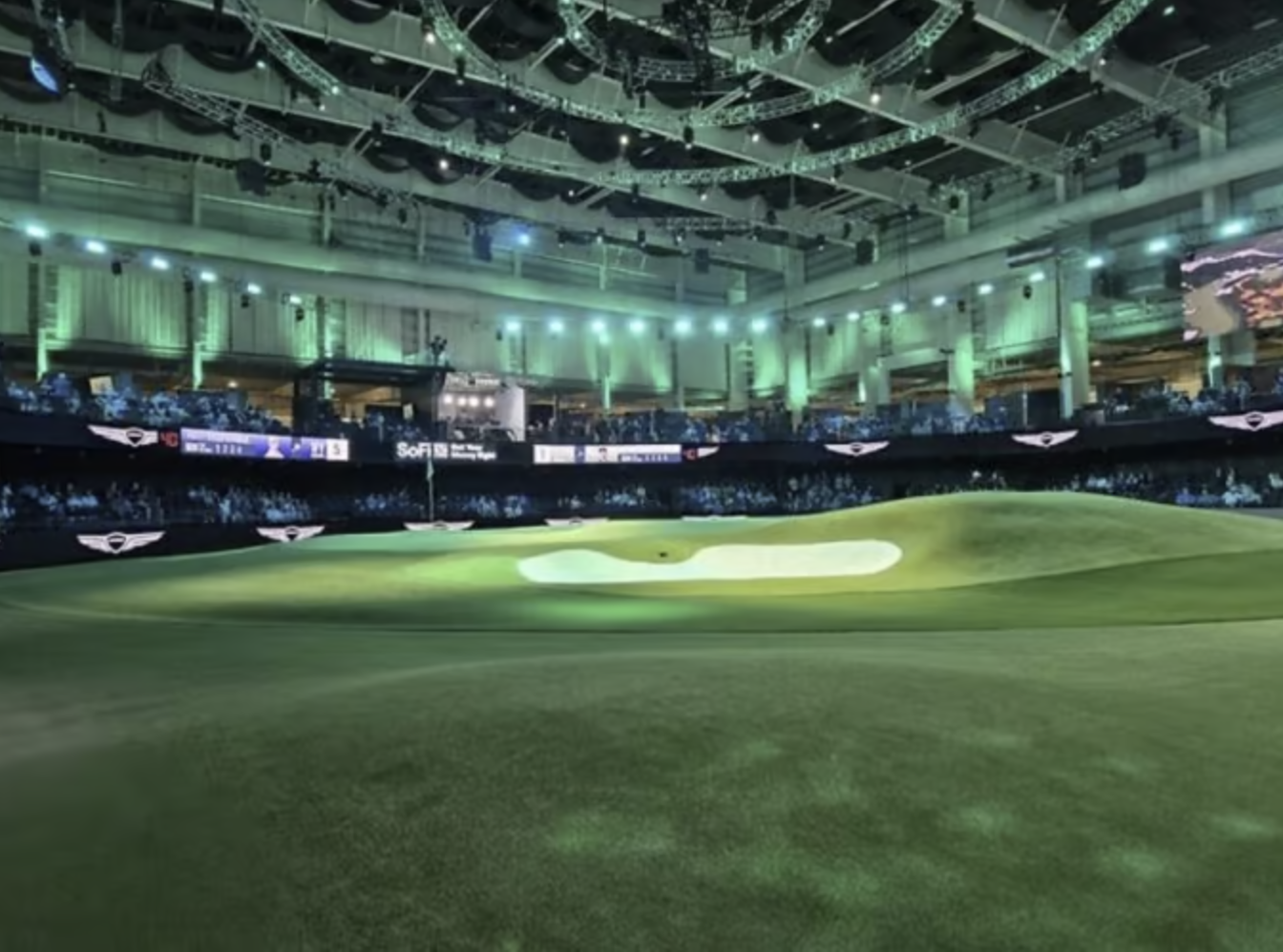 높이 19.5m, 너비 16.5m에 달하는 대형스크린과 벙커시설과 그린을 갖춘 TGL 대회장은 초대형 스크린에서 티샷을 날린 후, 실제 퍼팅 그림에서 승부를 겨루는 '신개념 하이브리드 골프대회'입니다.