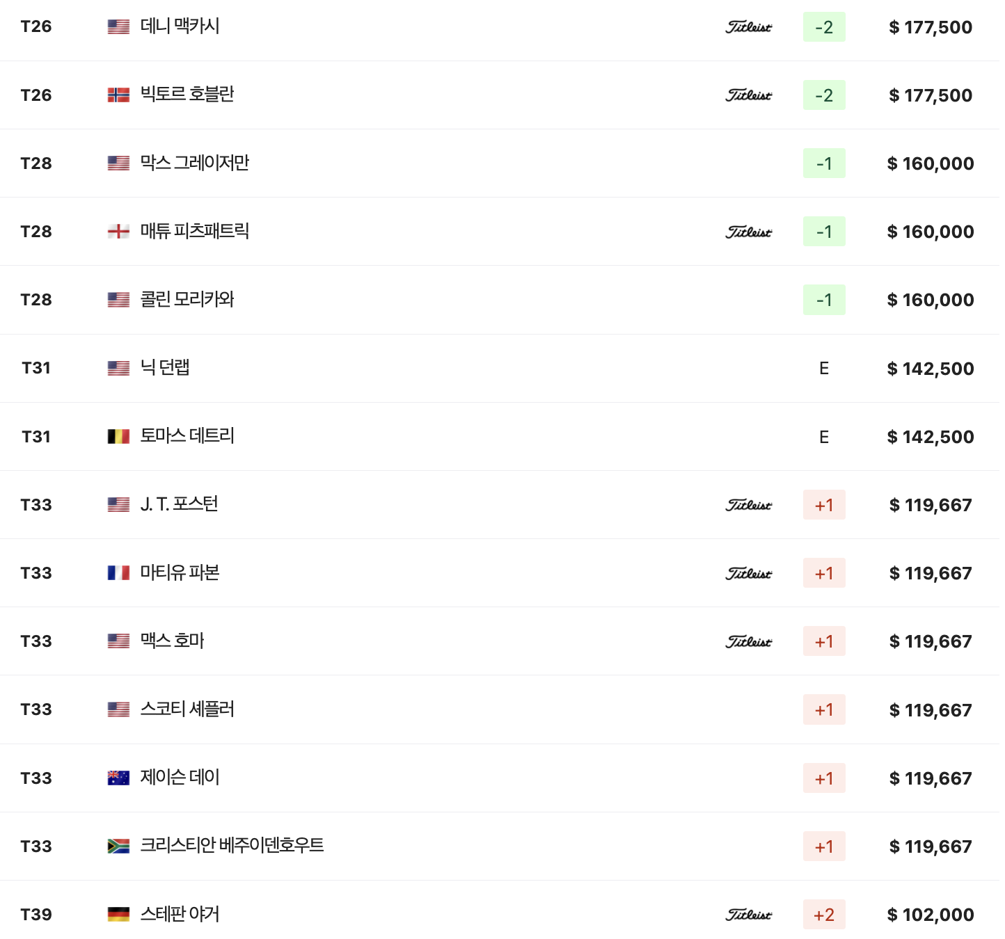 BMW 챔피언십 최종 결과