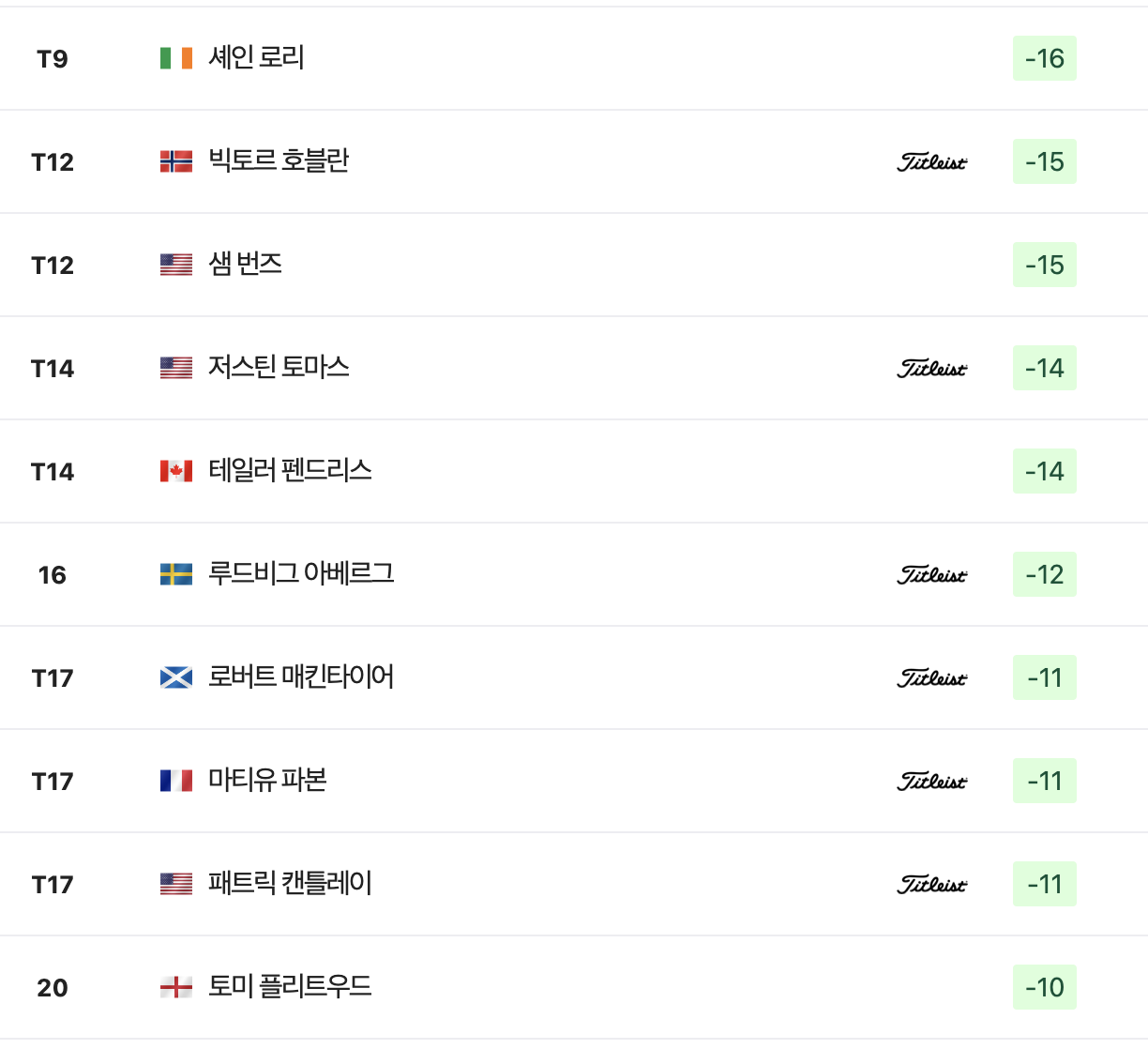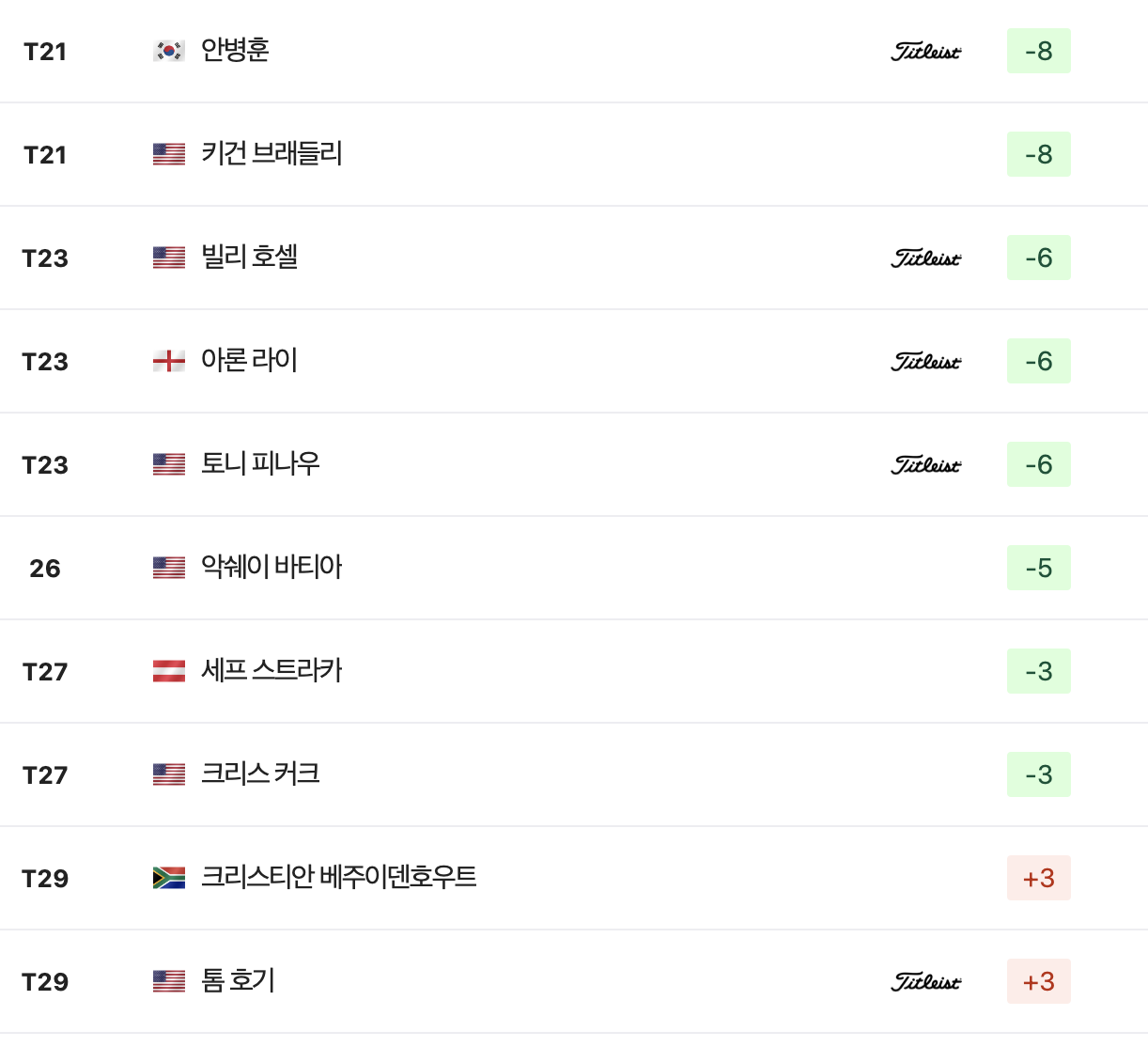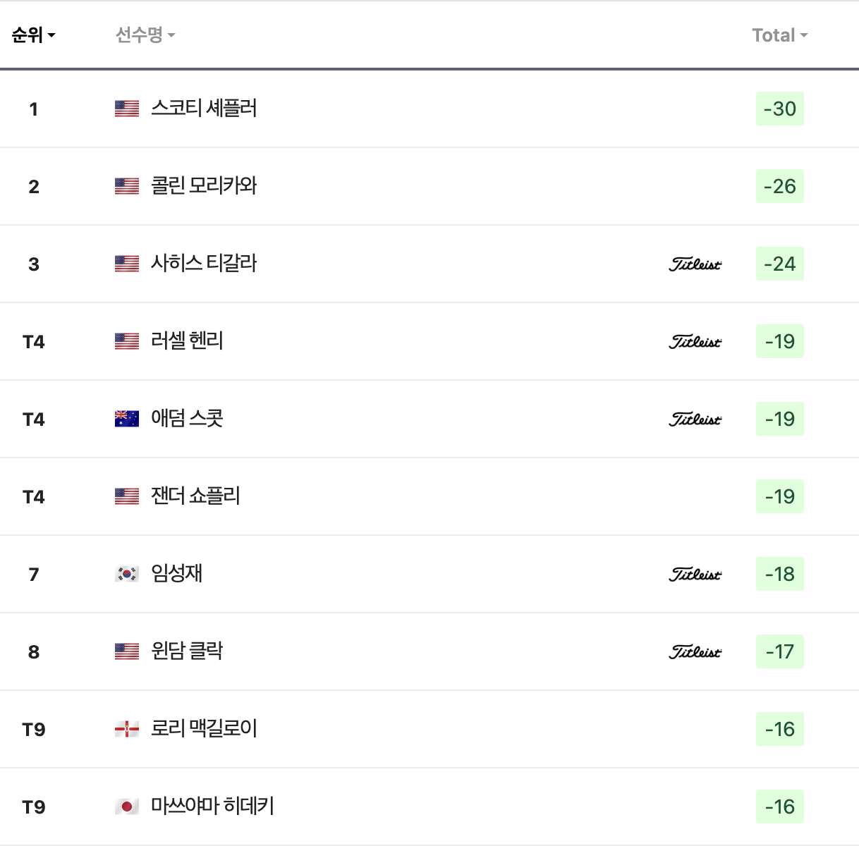 투어 챔피언십 리더보드
