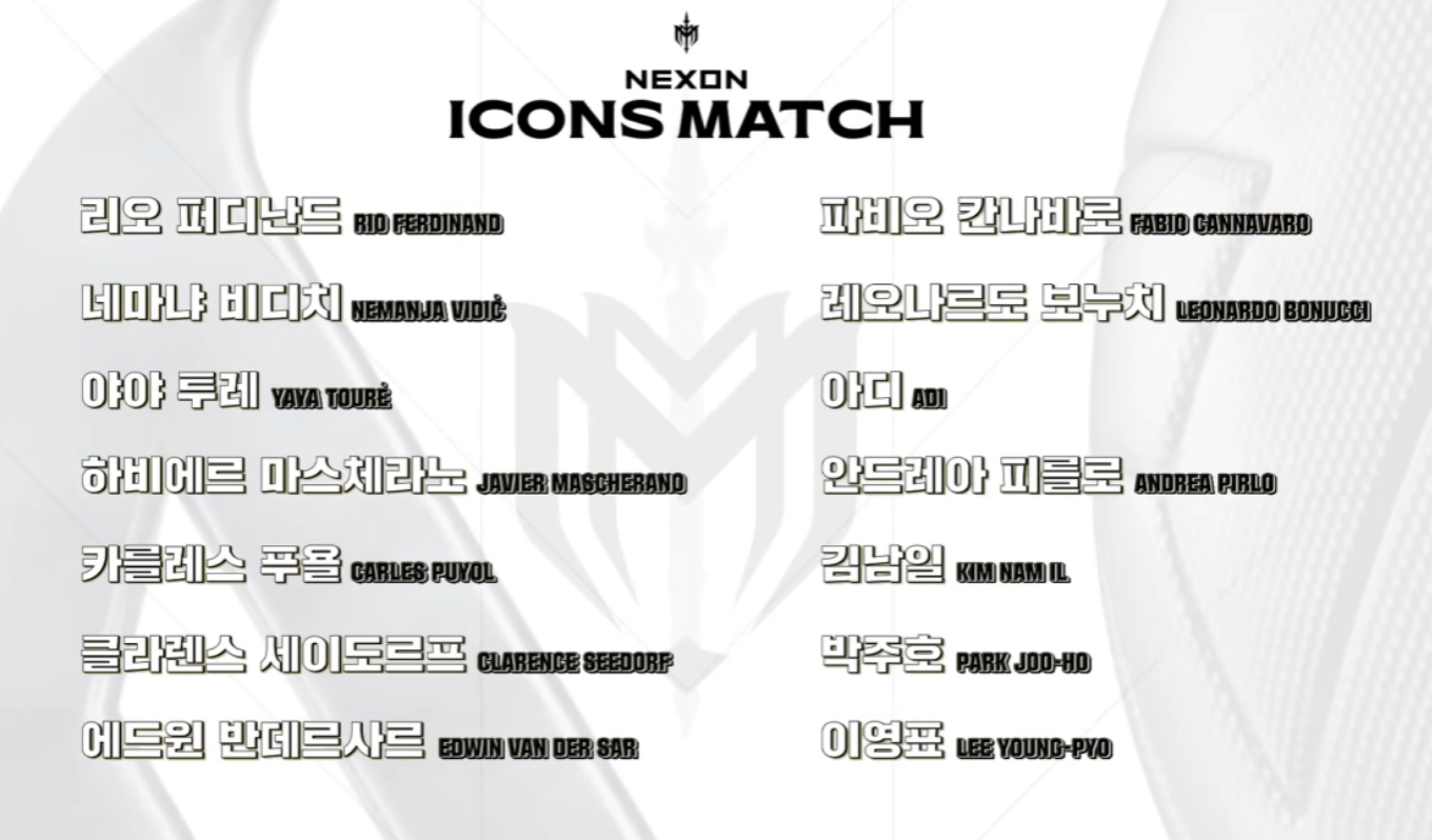 넥슨 아이콘 매치 : 창과 방패의 최종 선수 명단이 공개되었습니다.