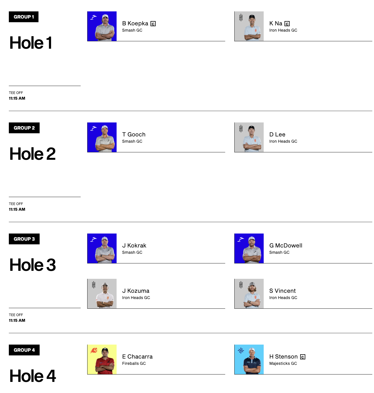 캐머런 스미스, 마크 레시먼, 맷 존스, 루카스 허버트 등 호주 선수들로만 구성된 팀 Ripper GC가 3번 시드를 받아 부전승으로 준결승에 진출합니다.