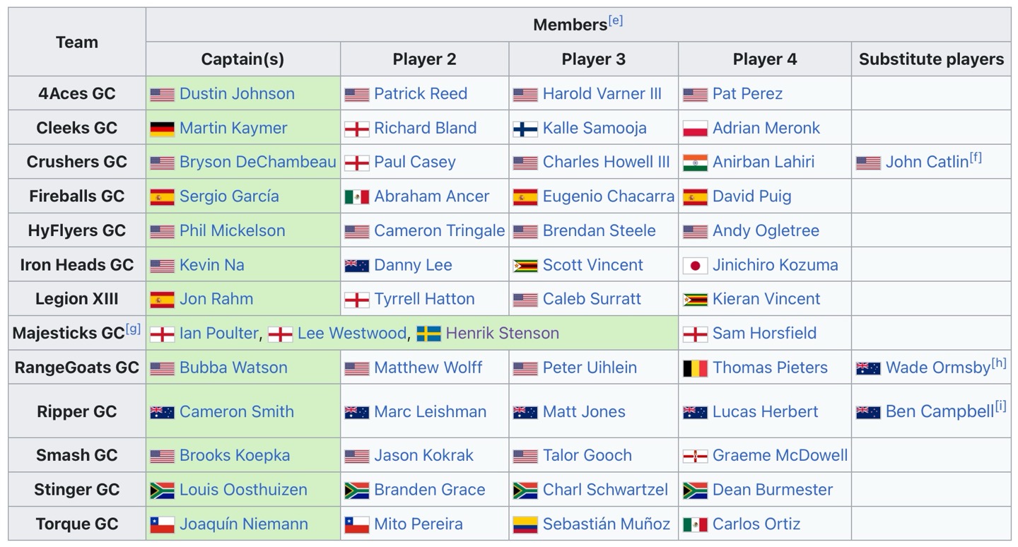 | Jon Rahm | PGA Tour, DP World Tour | Legion Xlll |