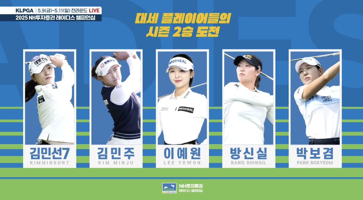 - 시즌 2승에 도전하는 선수들 - '블루캐니언 레이디스 챔피언십' 우승자 고지우(23.삼천리), 'iM금융오픈 2025' 초대 챔피언 김민주(23.한화큐셀), '넥센•세인트나인 마스터즈 2025'우승자 방신실(21.KB금융그룹), '덕신EPC 챔피언십' 초대 챔피언 김민선7(22.대방건설), 홍정민, 이예원