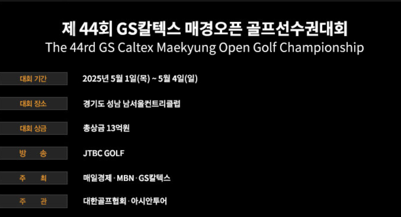 GS칼텍스 매경오픈은 이번이 44회째를 맞이하는 KPGA 전통의 한국 프로 골프의 메이저 토너먼트 대회입니다.