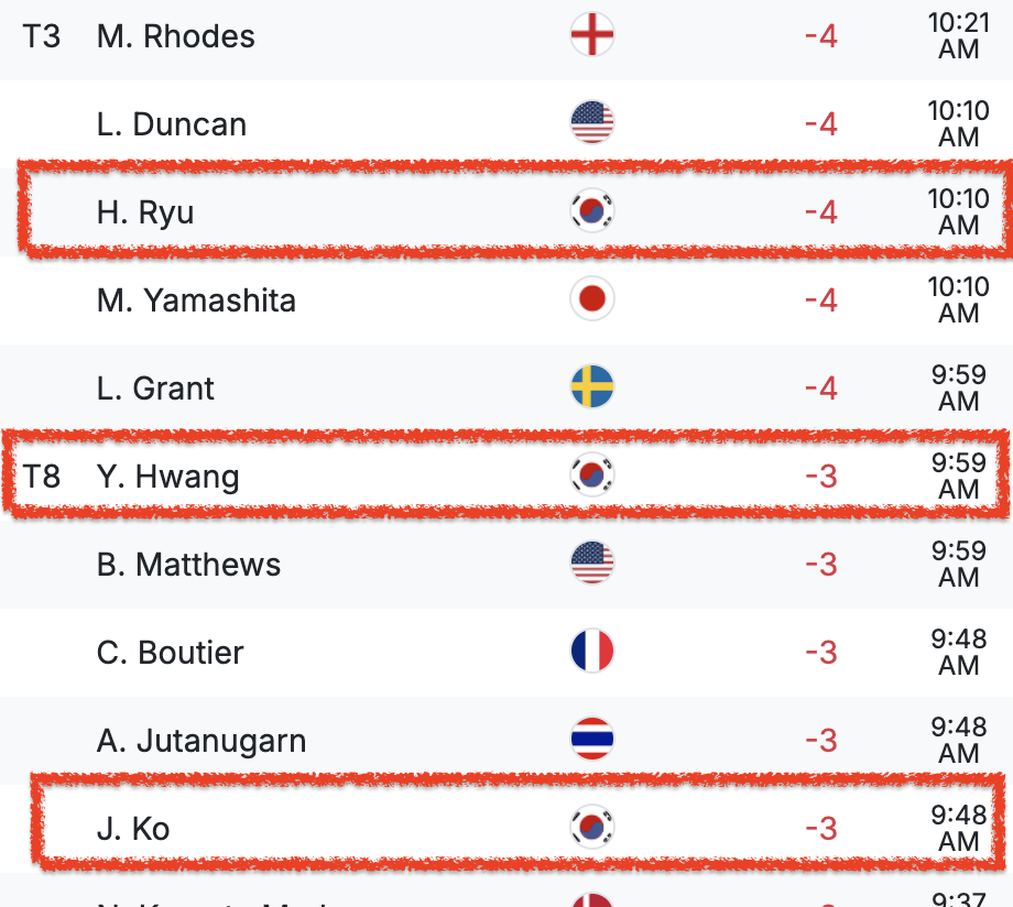 • 유해란 : 최근 2개 대회 연속 톱10 흐름을 이어오며, 1R부터 공동 3위로 ‘기세’를 증명했습니다.